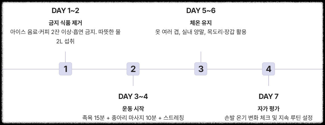 ① 수족냉증 7일 개선 집중 플랜 (생활 습관 교정)