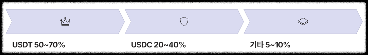 | USDT | 법정화폐 담보 (국채 중심) | 중간 (투명성 논란 잔존) | CeFi 거래소 유동성 |