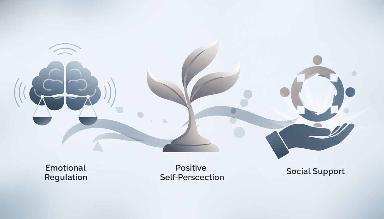 회복 탄력성은 타고나는 것이 아니라, 꾸준한 노력과 훈련을 통해 충분히 향상될 수 있는 능력입니다. 크게 세 가지 핵심 요소로 구성되어 있으며, 각 요소를 이해하고 강화하는 것이 중요합니다.