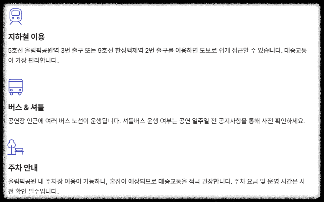 🚌 주요 공연장 (서울 올림픽홀) 교통편 안내