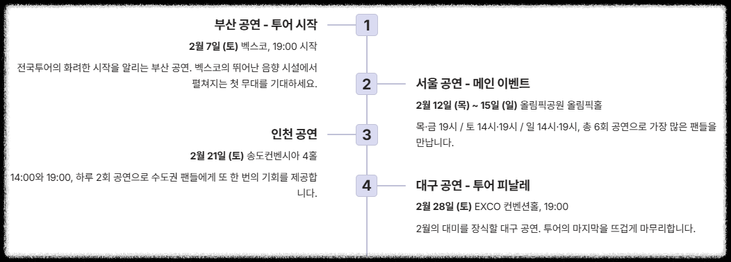 📌 2월 전국투어 도시별 상세 일정 및 장소