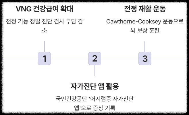 - 3단계 - 원인별 대처: 귀 문제(이석증, 메니에르)로 진단된 경우, 재활 운동과 저염식 등의 자가 관리법을 꾸준히 실천합니다.