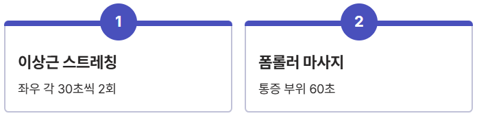 | 2 | 폼롤러 **엉덩이 마사지** | 통증 부위 60초 |