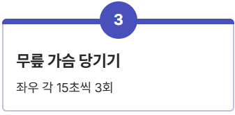 | 3 | 무릎 가슴 당기기 | 좌우 각 15초씩 3회 |
