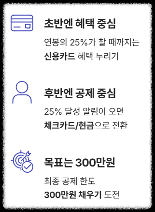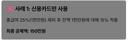 - 1단계: 기준선까지는 신용카드 사용 (공제율 0% 구간)