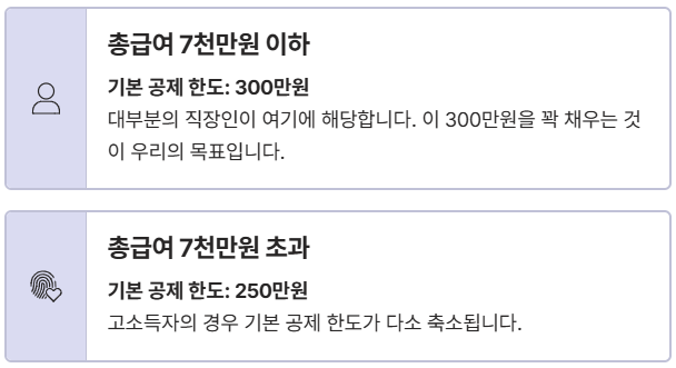 공제 목표: 총급여 7천만 원 이하 기준, 기본 300만원 공제한도 채우기!