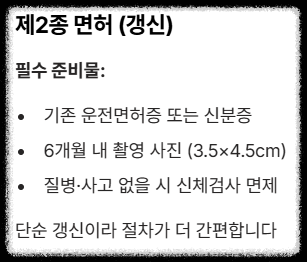 1. 1종 vs 2종, 갱신 준비물 비교 📋