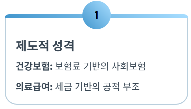 많은 분들이 의료급여와 국민건강보험을 헷갈리시는데, 사실 두 제도의 성격은 완전히 다릅니다. 국민건강보험은 우리가 매달 **보험료를 납부**하고 그 대가로 혜택을 받는 **사회보험**입니다. 반면에 의료급여는 저소득층의 생활을 보장하기 위해 국가가 세금으로 비용을 충당하는 **사회복지**이자 **공적 부조**의 성격을 갖습니다.