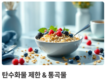 - 탄수화물 및 단순당 제한: **중성지방 낮추는 법**의 핵심입니다! 밥, 빵, 면, 과자, 단 음료 등 과도한 탄수화물과 설탕은 간에서 중성지방으로 변환되어 쌓입니다. 정제된 탄수화물 대신 현미, 귀리 등 통곡물 위주로 섭취하세요.