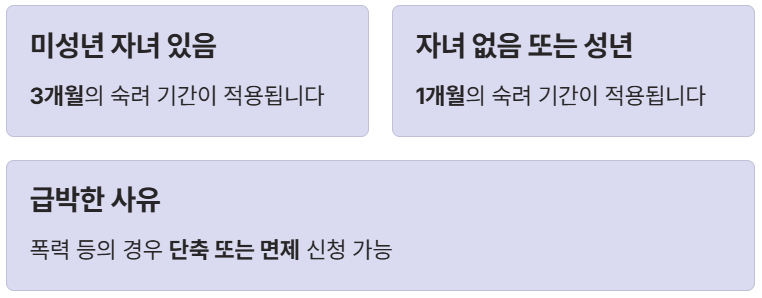 | 급박한 사유(폭력 등)가 있는 경우 | 단축 또는 면제 신청 가능 (별도 신청 필요) |