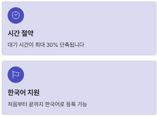 - **한국어 지원:** 처음부터 끝까지 한국어로 등록이 가능해 어려움이 없어요.