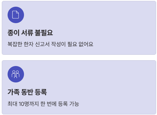 - **가족 동반 등록:** 가족이나 동반 여행자를 한 번에 등록할 수 있어 대표자 한 명만 처리하면 끝이랍니다.