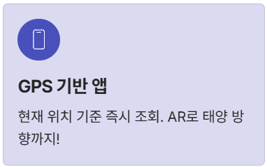 - ③ 한국 앱 추천 (네이버/GPS 기반) - 현장에서 가장 빠른 정보'일출일몰' (네이버 검색)이나 GPS 기반의 **'해돋이' 앱**은 현재 위치를 기준으로 즉각적인 정보를 제공해 줍니다. 특히 **'스카이뷰'** 같은 AR 기능 앱은 태양이 뜨거나 지는 방향과 고도를 실시간으로 보여줘서 **황금 시간대** 촬영 위치를 잡을 때 정말 끝내줘요!