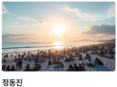 | 정동진 | 청량리/강릉발 05:42 첫차 (KTX-이음) | 정동진 해맞이축제 (12/31 23:00~) |