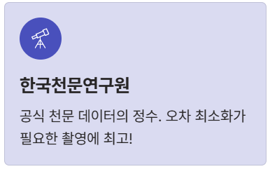 | 한국천문연구원 | 최상 (공식 기준) | 월별/연간 천문 현상 |