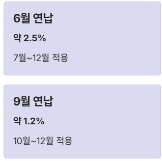 | 6월 | 약 2.5% | 7월 ~ 12월 |