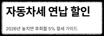 오늘 제가 준비한 이 글은 여러분이 2026년 자동차세 연납을 가장 효율적으로 끝낼 수 있도록 **최신 정보와 실전 절세 팁**만 모아 놓은 완벽 가이드입니다. 딱 5분만 투자해서 최대 5%의 혜택을 챙겨 가세요!