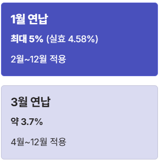 | 1월 (최대) | 약 5% (실효 4.58%) | 2월 ~ 12월 |