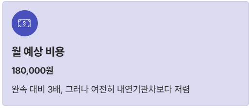 ✅ 월 예상 비용: 400kWh * 450원/kWh = 180,000원