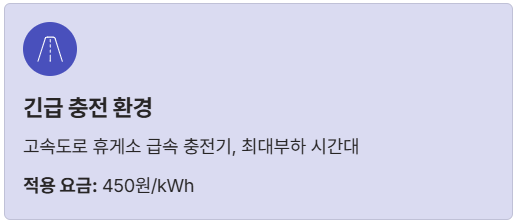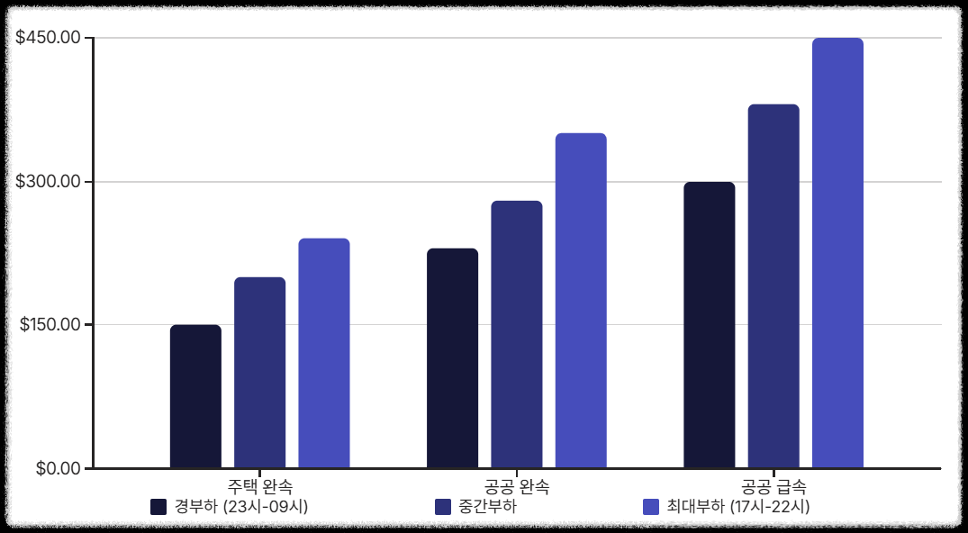 | 공공 급속 | 300원/kWh 내외 | 380원/kWh 내외 | 450원/kWh 내외 |