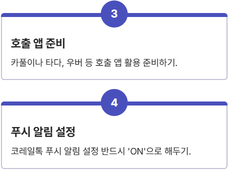 - 카풀이나 타다, 우버 등 호출 앱 활용 준비