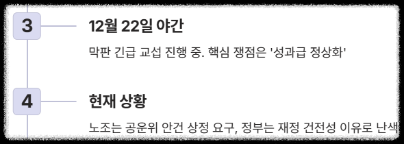 지난 12월 10일, 노사 간의 본교섭은 단 30분 만에 싸늘하게 결렬되었습니다. 노조 측은 "12월 23일 오전 9시부터 무기한 총파업"에 돌입하겠다고 선언한 상태죠.