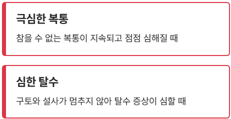 - 구토와 설사가 멈추지 않아 탈수 증상이 심할 때