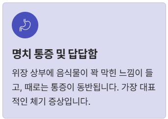 - 명치 통증 및 답답함: 가장 대표적인 증상이에요. 위장의 상부에 음식물이 꽉 막힌 느낌이 들고, 때로는 통증이 동반됩니다.