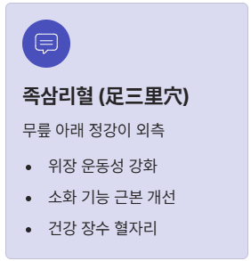 ③ 족삼리혈 (足三里穴): 위장 운동성 근본 강화