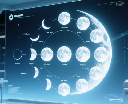 우리가 보는 달의 모양은 태양-지구-달의 상대적인 위치에 따라 변하는 삭망월(Synodic Month) 주기에 의해 결정됩니다. 약 29.5일을 주기로 달은 차오르고 기울기를 반복하죠.