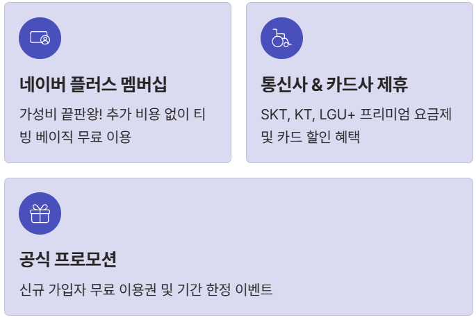 - 방법: 네이버 플러스 멤버십 가입 후 (멤버십 비용은 쇼핑 적립으로 상쇄), 티빙 이용권을 **베이직(무료)** 대신 **스탠다드(월 3천 원대)**로 선택하여 차액만 결제합니다.