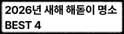 **'2026년 1월 1일 최고의 해돋이 명소 BEST 4'**를 동해안, 남해/제주, 수도권별로 엄선해 봤습니다! 각 명소의 **예상 일출 시각**과 함께 초보자도 쉽게 따라 할 수 있는 핵심 여행 팁까지 모두 정리했으니, 지금 바로 확인해 보세요!