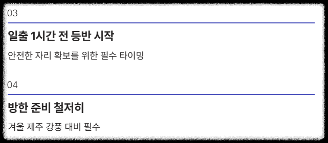 - 방한 준비 철저: 일출 시각 전후는 가장 추운 시간대입니다. 패딩, 모자, 장갑, 핫팩 등 보온 용품을 넉넉하게 챙기세요.