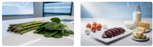 - 엽산이 풍부한 음식: 시금치, 아스파라거스, 오렌지 (세포 분열에 필수적입니다.)