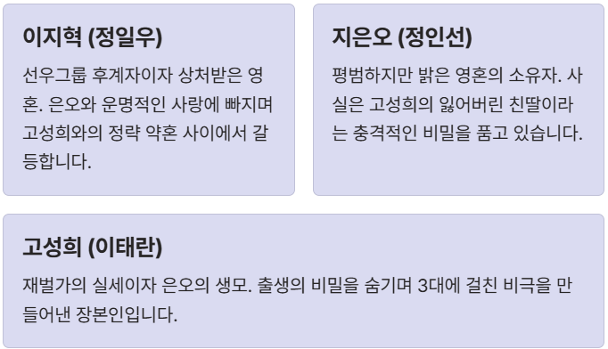 드라마의 핵심 갈등을 이해하기 위해 주요 캐릭터 관계도를 한눈에 정리했습니다.