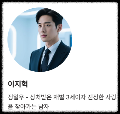 | 이지혁 | 정일우 | 선우그룹 후계자. 은오의 연인. 고성희와 정략 약혼. |