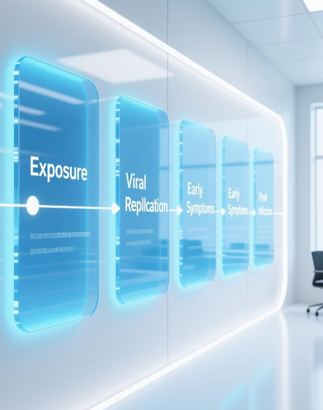 - 잠복기 말기 (증상 발현 1일 전): 이때부터 바이러스 배출량이 급증하여 전염력이 매우 높습니다. 증상이 없다고 안심하면 안 되는 이유입니다!