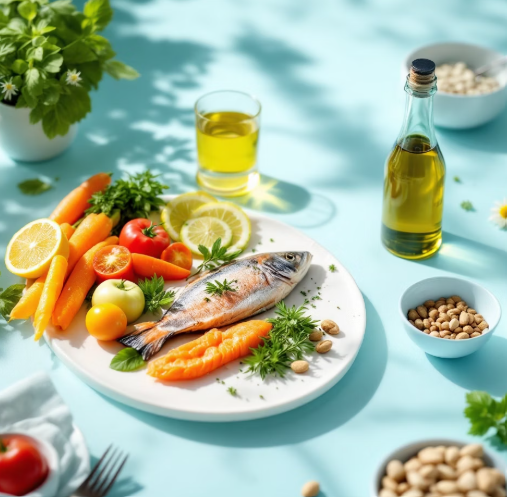- 주요 식단 변화: 붉은 고기/가공육 ▶ 생선(고등어, 연어), 닭가슴살, 콩류/견과류, 올리브 오일 중심.