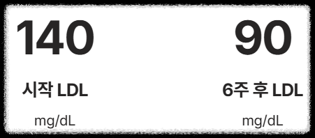 - 6주 후 LDL-C: 90 mg/dL (**50 mg/dL 감소!**)